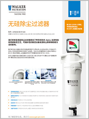 WALKER除塵式無硅過濾器是英國WALKER FILTRATION公司為噴漆及表面處理等工藝所需的無硅酮壓縮空氣這種應用設計的,經它過濾的壓縮空氣不含硅酮,也無粉塵等細微顆粒,可以大幅提高噴漆質量。